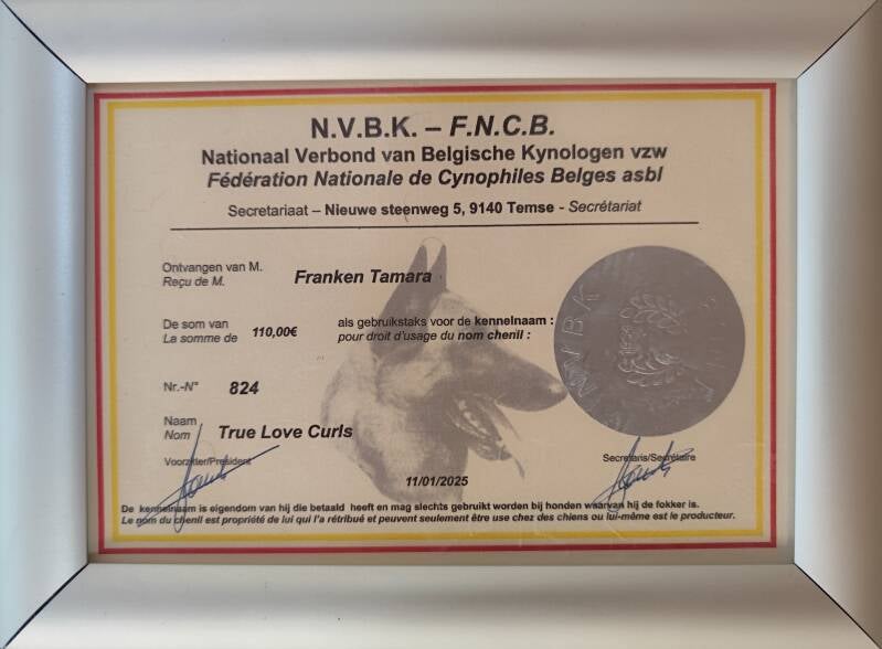 In België werden poedels met een veelkleurige vacht, ook wel FKM (Franse Krulhaar Meerkleurig) genoemd, tot 1 augustus 2024 niet erkend door de internationale FCI (Fédération Cynologique Internationale), vertegenwoordigd in België door Sint-Hubertus. Vanaf 1 januari 2025 (nadien uitgesteld tot 1 juli 2025) verplicht de Belgische overheid bovendien dat enkel stambomen mogen worden meegegeven als het stamboek door hen erkend is. Omdat de Sint-Hubertus op dat moment nog niet erkend was, hebben we ervoor gekozen onze poedels te registreren bij de NVBK (Nationaal Verbond van Belgische Kynologen), een officieel erkend Belgisch stamboek. Hierdoor hebben al onze hondjes een NVBK-stamboom.