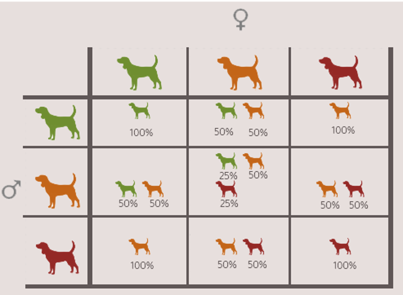 Honden kunnen op basis van hun genetische status als volgt worden ingedeeld: